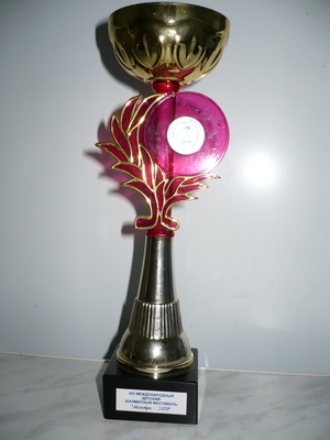 На снимке: кубок, завоёванный на XIV фестивале "Маэстро-2008" командой "Дружба" из г.Барнаула.